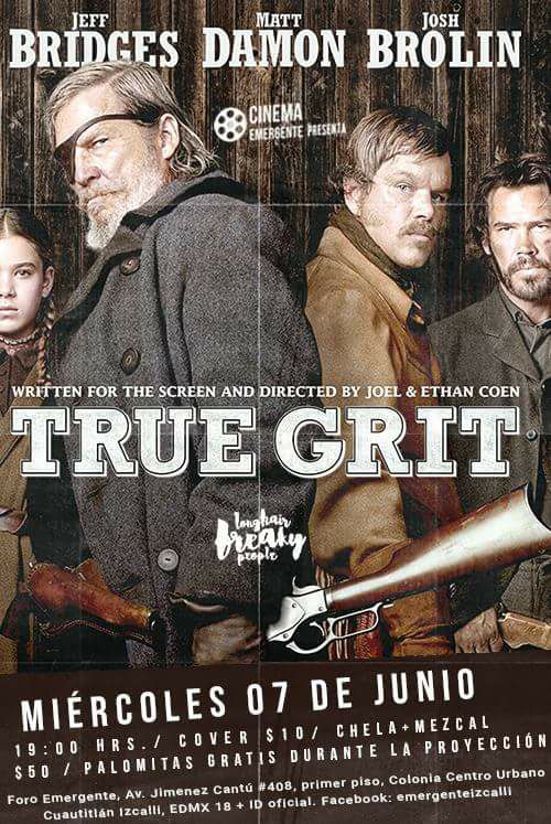Otro ciclo que ha atravesado las semanas en el Emergente fue el de Western, que proyectó la tremenda True Grit (2010), escrita y dirigida por los hermanos Cohen, y con las actuaciones de Jeff Bridges, Matt Damon y Josh Brolin; A Fistful of Dollars (1964), el clásico de Sergio Leone, con música de Ennio Morricone, y que fundó el subgénero spaghetti western; Django Unchained (2012) penúltimo filme del director estadunidense Quentitn Tarantino, y que contó con las actuaciones de Leonoardo Dicaprio y Jamie Foxx; por último El Topo (1970) de Alejandro Jodorowsky, considerada una de sus mejores, que fundó y nombró el acid western.