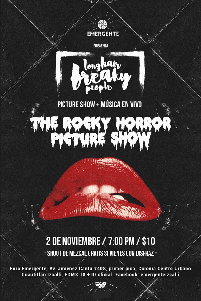 Itza: A veces complementamos también con actos histriónicos. La primera película que proyectamos fue The Rocky Horror Picture Show (1975), y quisimos hacer como un sensorama, a manera de romper la cuarta pared. Cuando había escenas de lluvia, salpicábamos a la banda de agua. Queríamos involucrarlos a profundidad en la atmósfera de la película, ya que salió de una obra de teatro.