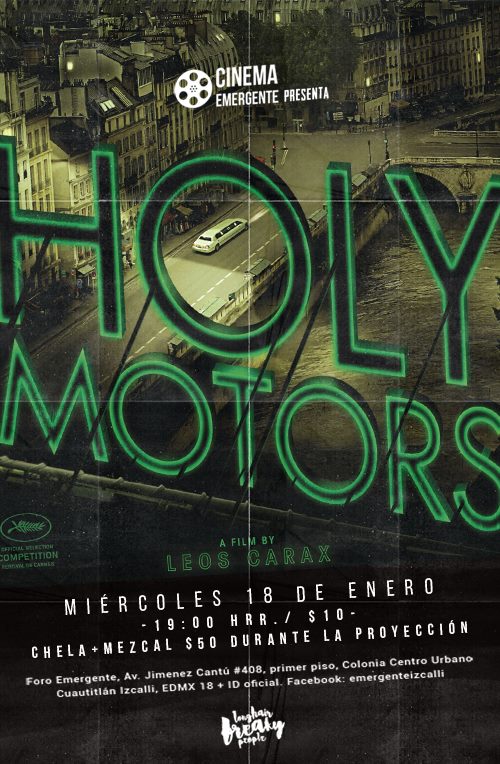 Itza: Sí, nuestro cineclub se llama Longhair Freaky People, por una canción de Fat Boy Slim. Y nos está yendo muy bien. Nos han buscado de diferentes proyectos en el interior de república, en Puebla, por ejemplo, para también montar cine allá, en un autocinema; y de Guadalajara, para montar el cineclub en un foro que quieren abrir allá muy a la manera de Emergente. Luego nos preguntan, ¿qué onda, ustedes se dedican a esto? Pues definitivamente no… Todos aquí tenemos nuestras chambas aparte. Yo soy diseñadora gráfica, y Alex es diseñador industrial.