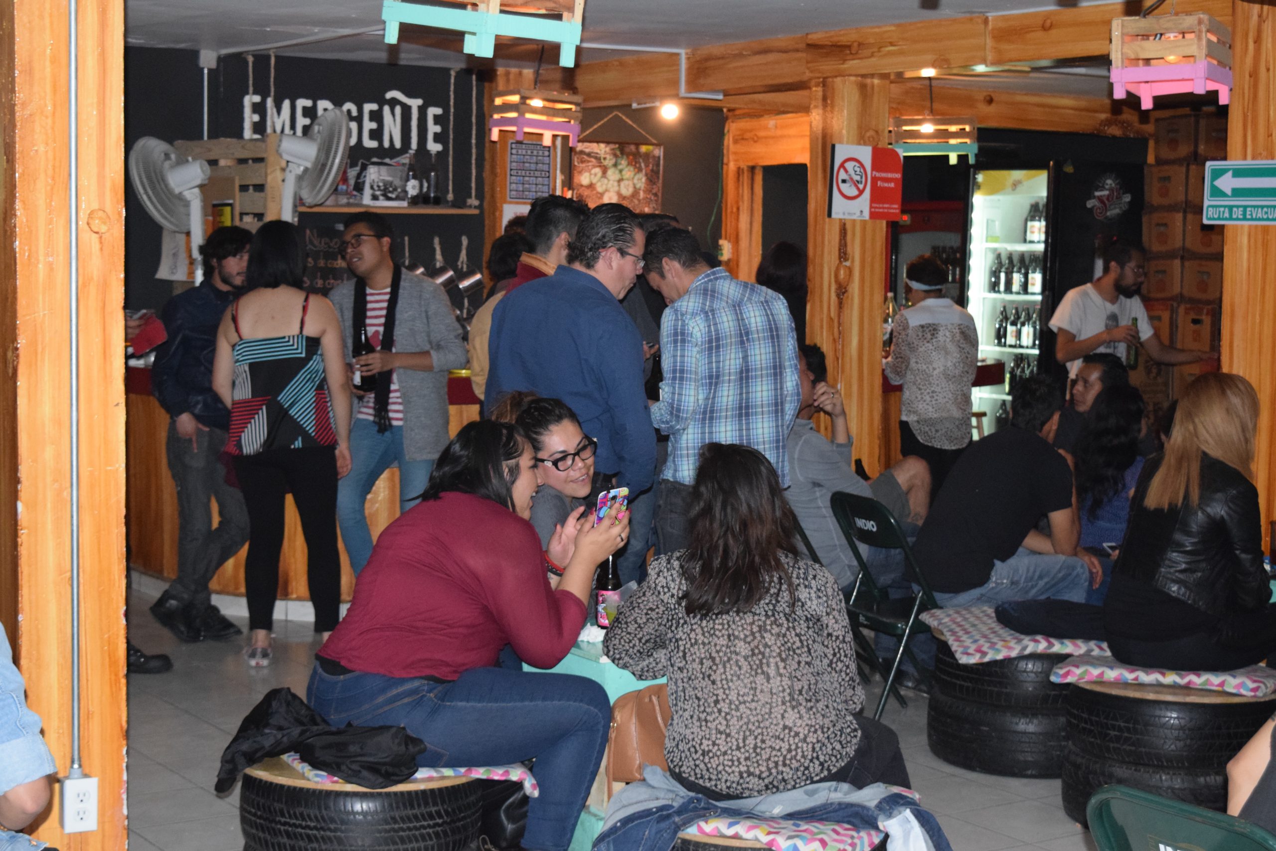 La noche en el Emergente es una noche cálida y el ambiente es celebratorio. Todos los presentes llegan al lugar con la estricta tarea de pasarla bien. No hay una sola cara larga ni nadie ajeno a la buena vibra. Y aunque el pulque, la cerveza, y el mezcal corren con fruición, todos parecen manejar honrosamente la borrachera. El aire se inunda de olores divinos.